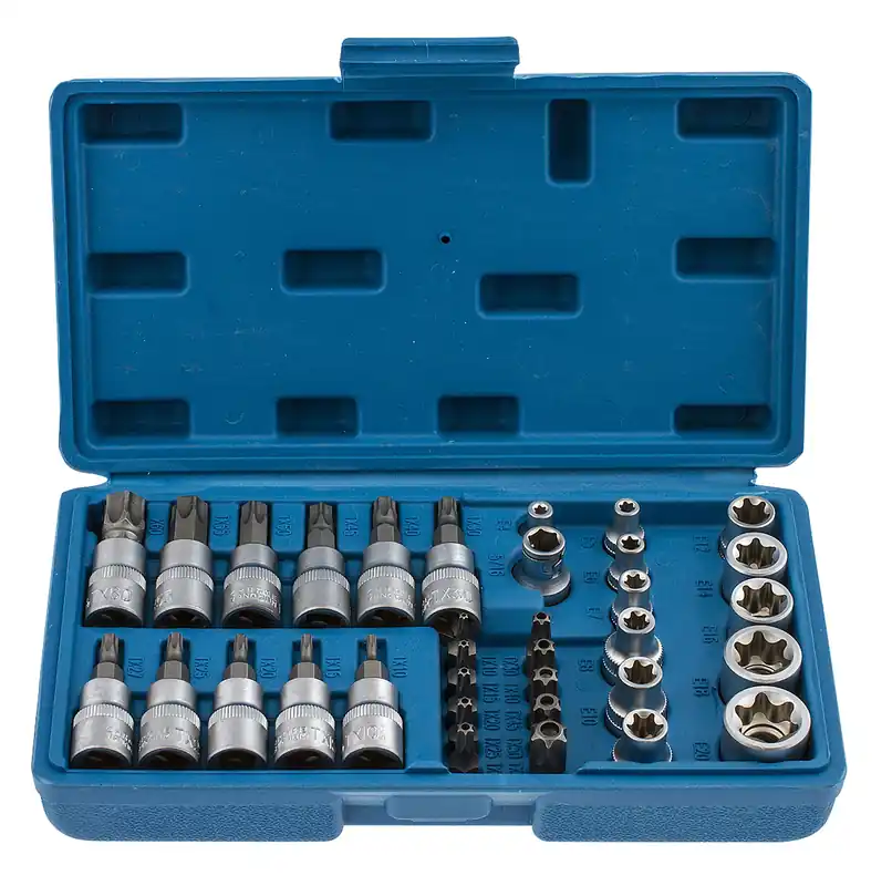 - 12 stycken Torx hylsor E4, E5, E6, E7, E8, E10, E11, E12, E14, E16, E18, E20 längd 28 mm