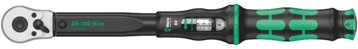 En momentnyckel med 3/8″ fyrkants-fäste och taktil mekanism med hörbara klick.