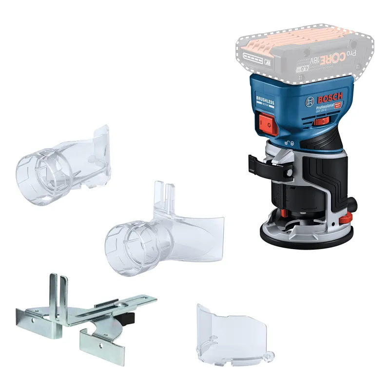 Kombinera fördelarna med en premiumsats, kraftfull borstlös motor och kompatibilitet med ett stort sortiment av tillbehör för alla typer av användning, från lättare profilering av kanter till mer krävande fräsning. Denna 18V handöverfräs har en kompakt höjd för att minimera övre tyngd och maximera verktygskontroll, hands-free spindellås för problemfritt byte av bits och en fin djupjustering som ger en överlägsen fräsning och som ligger fint i handen. Dessutom är GKF 18V-8 den enda 18V handöverfräsen i världen med anpassad yta och utsugsadaptrar för kantfräsning, vilket ger ett mycket effektivt dammutsug i alla situationer.