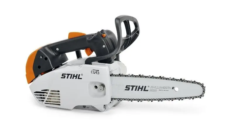 Stihl´s MS151 TC-E är den allra lättaste av STIHLs topphandssågar. MS 151 TC-E är det perfekta komplementet vid beskärning högt uppe i trädkronorna. Utrustad med manuell bränslepump och lättstartsystemet STIHL Easy2Start (E). Levereras med sågkedjan 1/4″-PM3 som ger mycket fina snitt. Får endast användas av utbildade användare.