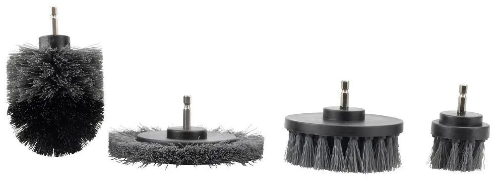 PELA 544421 är ett set med rengöringsborstar med 6″-fäste som är speciellt designade för användning med skruvdragare/borrmaskiner. Med 4 olika borsthuvuden i PP-material och ett skaft av metall är dessa borstar bra för djuprengöring i bilen eller hemmet. Fäst snabbt och enkelt borstarna på din skruvdragare/borrmaskin.