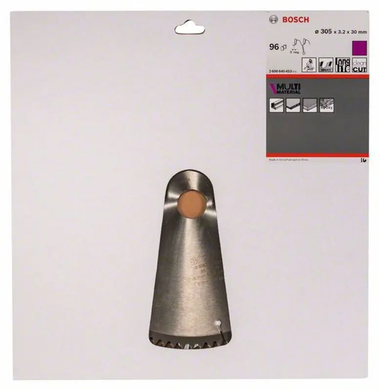Bosch Multi Materialsågklinga på 305mm anpassad för flera olika typer av material. Eftersom sågklingan har en negativ tandning kan du även kapa aluminium med denna sågklingan.