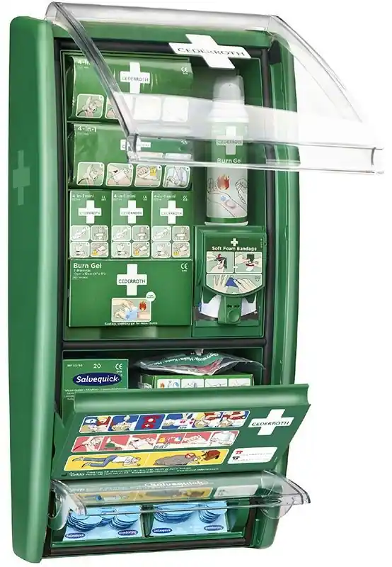 Första Hjälpen-station för arbetsplatser med risk för brännskador och/eller som hanterar livsmedel, t ex storkök, livsmedelsindustrin samt verkstad.