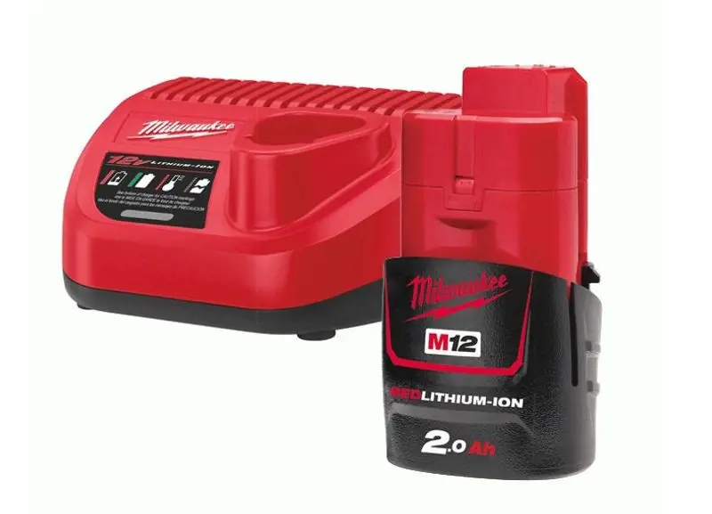 Milwaukee batteri & laddpaket bestående av 1st laddare C12C samt ett 12V 2,0ah batteri.