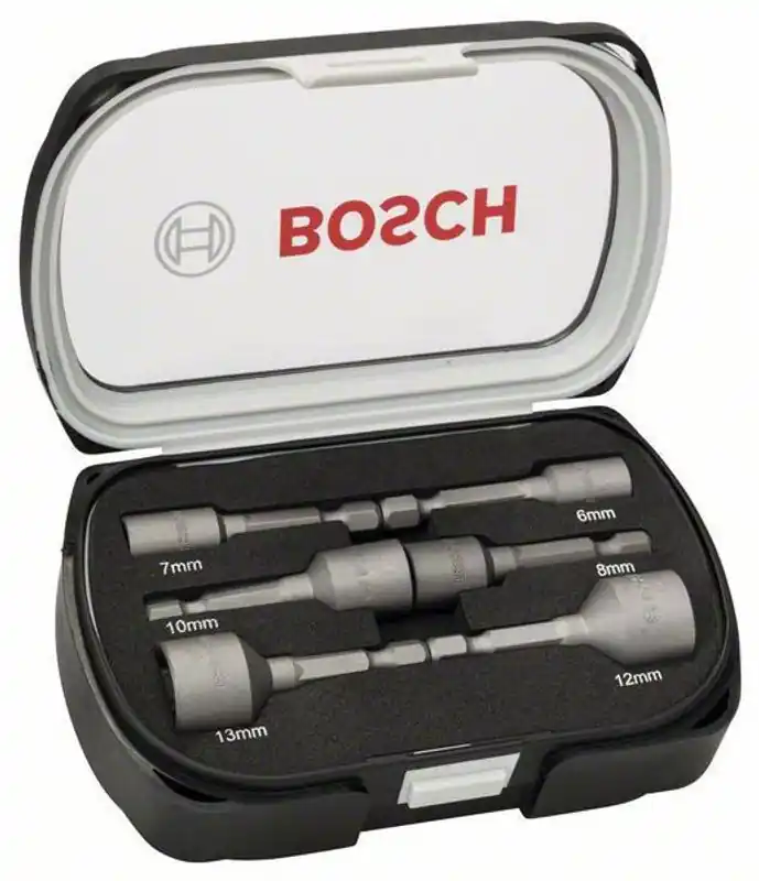 Bosch 2608551079 är en 6-delars hylsnyckelsats av hög kvalité för borrskruvdragare. Hylsorna har en längd på 50mm och är förpackade i en smidig förvaringsbox.