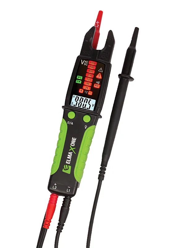 Elma X One–True RMS elektrisk multitestare/spänningsprovare. Med Elma X One återuppfinner Elma spänningsprovaren. Aldrig har det varit så många smarta och genomtänkta funktioner i ett instrument. Elma X One är en smidig True RMS multitestare, som kombinerar spänningsprovaren med en öppen strömtång i mycket slank design. Perfekt för arbete under spänning.