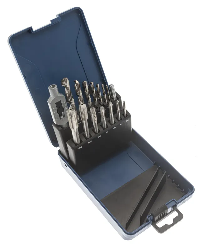 PELA 509258 är en sats med 15 st gängtappar. I satsen medföljer även borr samt ett svängjärn. Levereras i praktisk plastlåda.