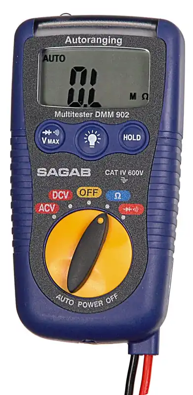 SAGAB DMM-903 är en multimeter i mycket smidigt format. Trots det lilla formatet har den en mycket hög säkerhetsklass; CAT IV 600V, CAT III 1000V. Skyddad mot felkopplingar genom elektronisk säkring med automatisk återställning.