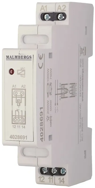 Malmbergs Arbetsströmrelä 16A är ett brumfritt arbetsströmrelä vilken används för styrning av kopplingsutrustningar, belysning m.m. Den har växlande potentialfria kontakter i 1- eller 2-poligt utförande, där en LED-diod indikerar läge. Finns med manöverspänning som är 24V AC/DC. Malmbergs Arbetsströmrelä 16A är halogenfri.