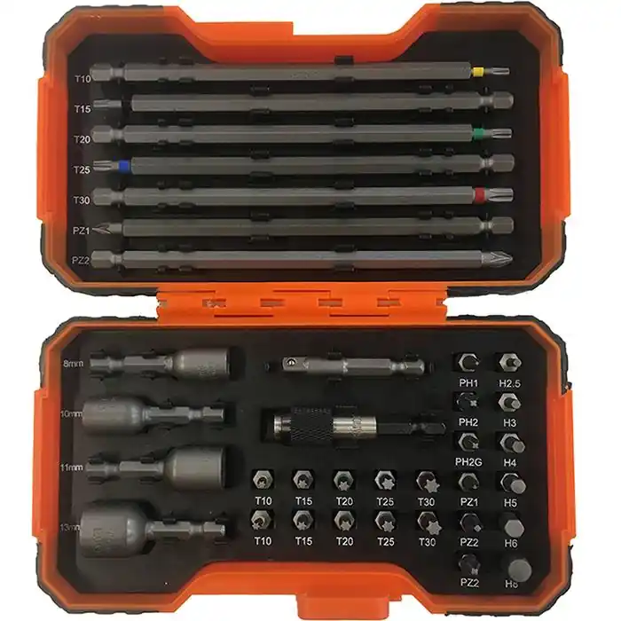 Bahco 59/S35BC är en färgkodad bitssats med 35 delar standardbits med 1/4″-fäste. Innehåller Torx, Phillips, Phillips Grabber, Pozidriv, utvändig sexkant, adapter och hållare.