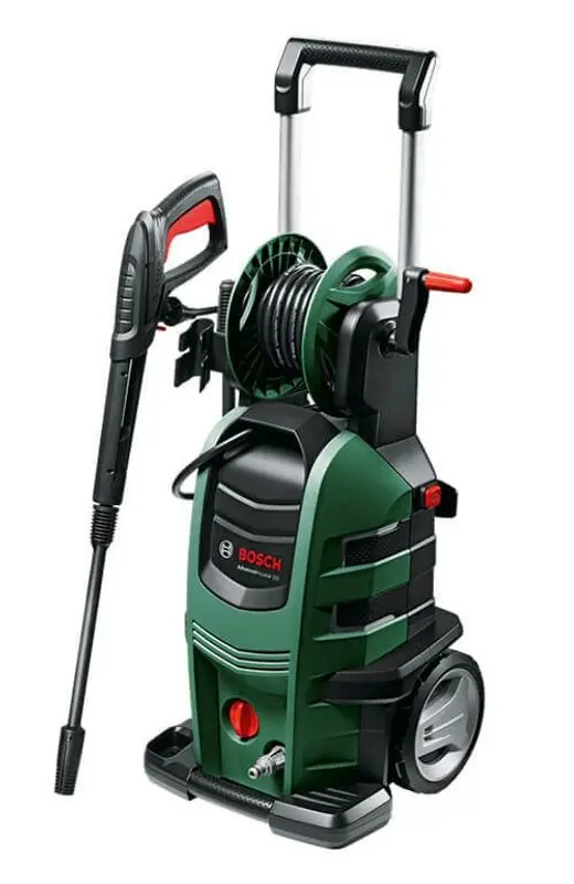 Bosch högtryckstvätt AQUATAK 150 QUAD är en kraftfull högtryckstvätt med ett tryck på upp till 150 bar. Högtryckstvätten jetstrålemunstycke, vidvinkelmunstycke, transporthjul, slangvinda mm. Bosch högtryckstvätt levereras komplett med slang, munstycken, vattelfilter, lans.