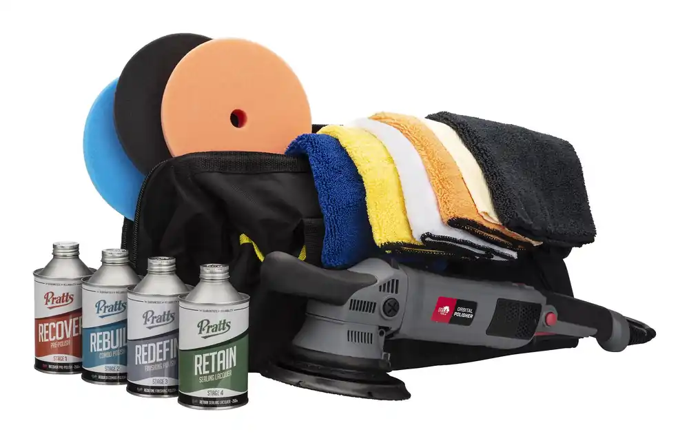 PELA 513922 är ett komplett kit med allt du behöver för att komma igång med maskinpolering. Polersatsen innehåller PELA oscillerande polermaskin 510892 på 810 W, Pratts polermedel, polersvampar till vardera steg, mikrofiberdukar och Pratts lackförsegling. Allt detta i en praktisk förvaringsväska.