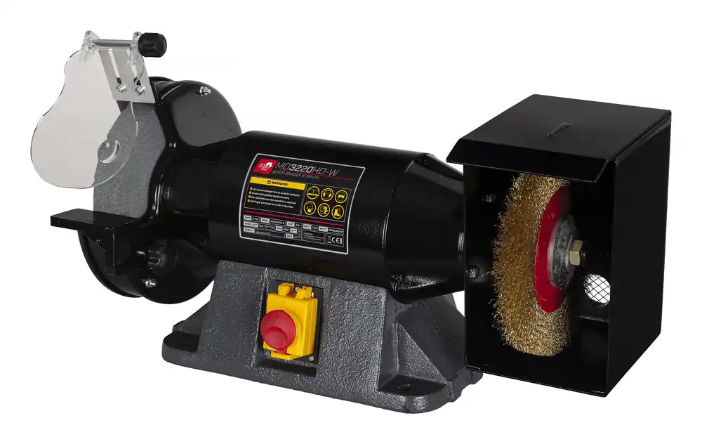 Pela 81762 är en bänkslipmaskin för verkstad och industri med stålborste och slipskiva. Stor och kraftig motor. Anslutningsstos för utsug 45 respektive 40 mm. Kan kompletteras med stativ 63211.