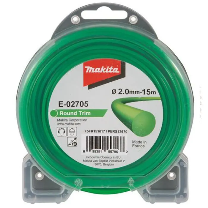 Makita E-02705 är en trimmertråd med en diameter på 2,0 mm, lämplig för användning med flera olika trimmers.