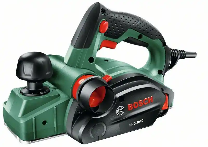 Bosch elhyvel PHO 2000 är en stark 680W hyvel med en hyvelbredd på 82mm. Hyveln klarar av att hyvla ett spåndjup på upp till 2mm och ett ergonomiskt gummerat handtag för att ge bästa tänkbara komfort.