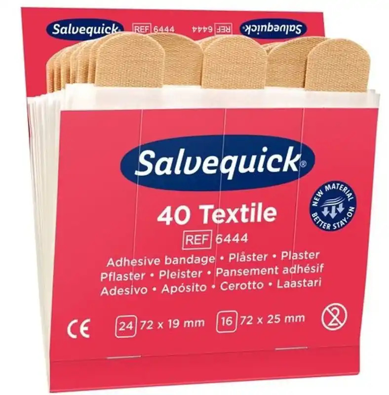 Salvequick Textilplåster är följsamma plåster av hög kvalitet. Plåstren är allergitestade. De är lätta att applicera, flexibla och smidiga att använda.