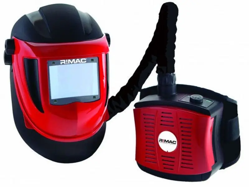 RIMAC Svetshjälm komplett med batteridriven friskluftsmotor. Perfekt för dig som skall svetsa länge.