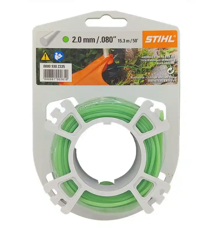 Stihl Nylontrimmertråd som är både ett rivstarkt och långtidselastiskt material. Passar till trimmers med 2,0mm diameter på trimmertråden.