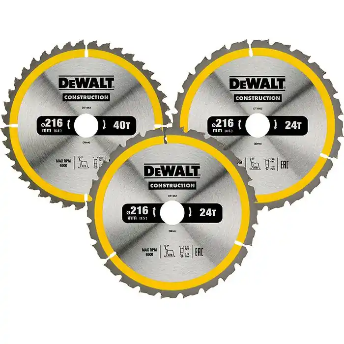 DeWalt DT1962-QZ är ett sågklingspaket för kapning av grovt virke med ev. spikar i. Paketet består av två stycken grova klingor med 24 tänder samt en fintandad klinga med 40 sågtänder. Klingorna har en diameter på 216 mm och 30 mm i håldiameter. Det ultimata startpaketet för dig som vill kunna båda kapa grovt och fint till en vettig peng. Sågklingorna är växelvis slipade och kan eventuellt klara att kapa igenom enstaka spikar.