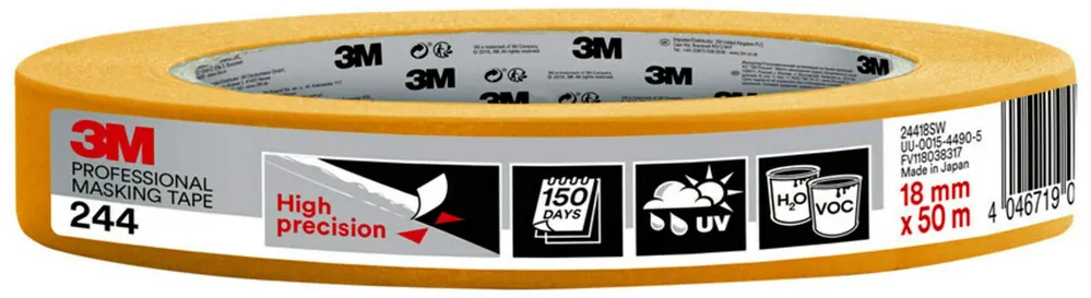 Denna professionella maskeringstejp fäster starkt på de flesta ytor, både inomhus och utomhus. Tejpen ger skarpa färgkanter och är lämplig för alla typer av färger. Den kan tas bort utan att lämna rester i upp till 150 dagar.