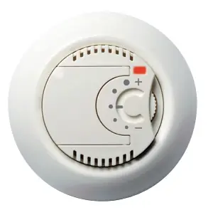 Renova Golvvärmetermostat avsedd för elektronisk golvvärme. Med 2-polig brytare, 250V, 16A 3600W resistiv last. Temperaturområde +5°C till +50°C. Skillnad mellan till- och frånslag = 1°C. 2-polig brytare dold under frontluckan. Renova Golvvärmetermostat levereras med 4m golvgivare. För infällt IP20 montage i apparatdosa eller Utanpåliggande i Renova utanpåliggande hög dosa. Renova Golvvärmetermostat kan kombinationsmonteras och passar med Renova Tapetskydd.