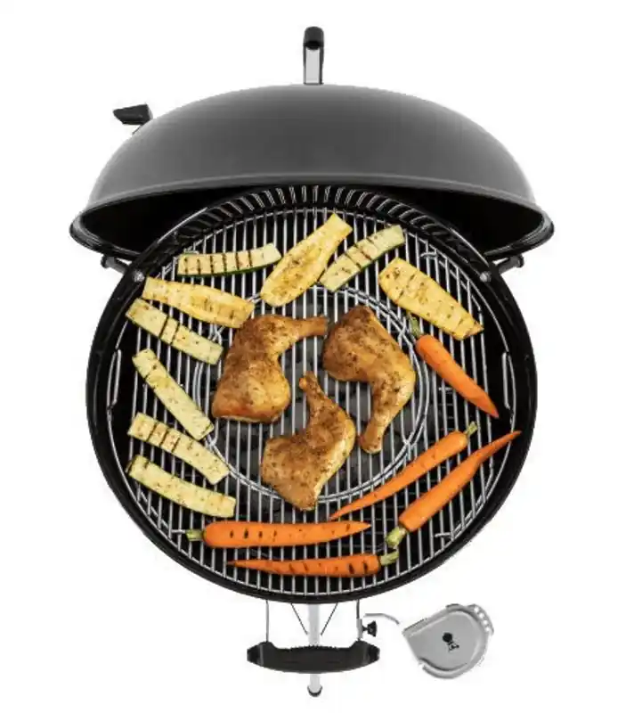 Den här grillen har en Tuck-Away lockhållare för att enkelt kunna ta bort och lagra locket under användning. Dessutom, med One-Touch rengöringssystemet i rostfritt stål, blir rengöring av grillen enkel och smidig. Grillen har en robust konstruktion med porslinsemaljerat lock och balja samt extra kraftigt kolgaller i stål.