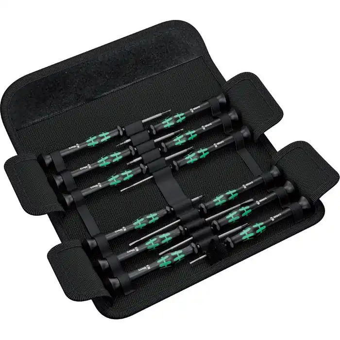 12-delars Micro-skruvmejselsats för elektroniska applikationer innehållande 2st PH kryss-skruvmejslar, 2st torx-skruvmejslar, 5st spår-skruvmejslar och 3st HEX insex-skruvmejslar. Innehåll:1 x PH00 60mm Skruvmejsel för Phillips kryss-skruv 1 x PH0 60mm Skruvmejsel för Phillips kryss-skruv 1 x TX 5x40mm Skruvmejsel för torx-skruv1 x TX 6x40mm Skruvmejsel för torx-skruv1 x 0.23×1.5x40mm Skruvmejsel för spårskruv1 x 0.30×1.8x60mm Skruvmejsel för spårskruv 1 x 0.40×2.0x60mm Skruvmejsel för spårskruv 1 x 0.40×2.5x80mm Skruvmejsel för spårskruv 1 x 0.50×3.0x80mm Skruvmejsel för spårskruv 1 x 0.9x40mm Skruvmejsel för HEX insex-skruv1 x 1.5x60mm Skruvmejsel för HEX insex-skruv1 x 2x60mm Skruvmejsel för HEX insex-skruv