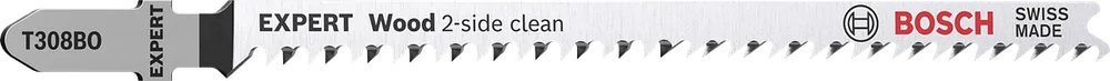Finsnickare och träarbetare har alltid satt en ära i att se till att den ”rena sidan” av ett sticksågssnitt hamnar på den synliga delen av arbetsmaterialet. Ibland går det att vända på arbetsstycket. andra gånger kan sticksågen helt enkelt hållas upp och ner. Eller så kan du använda EXPERT ’Wood 2-side clean’. som erbjuder perfekta snitt utan flisning på båda sidorna. tack vare dubbla tandrader.