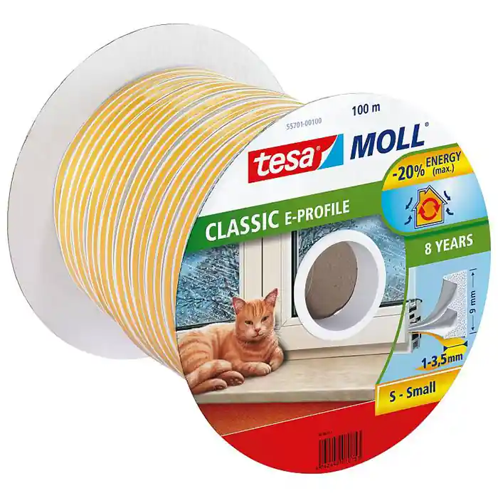 Tesa E-list 55701-00100-00 är en självhäftande gummitätningslist som passar på många dörrar och fönster. Tätningslisten är enkel att applicera och kan tas bort snabbt för reparation och byte. Den mycket tåliga gummiprofilen klarar nästan alla väderförhållanden och garanteras fungera i minst åtta år. Tätningslisten är UV- och ozonresistent och klarar av även extrema temperaturer mellan -50 °C och +60 °C. Används för att täta mellanrum mellan 1-3,5 mm och sparar upp till 20 % av din elräkning.
