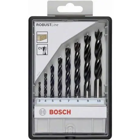 8-delars träspiralborrsats Ø 3, 4, 5, 6, 7, 8, 9 och 10 mm i praktisk förpackning.