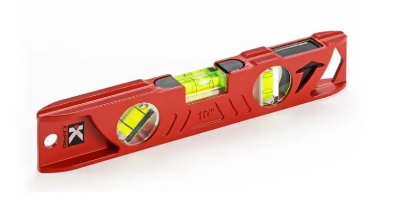 Kapro torpedovattenpass 923 är ett kraftigt litet proffsvattenpass med tre libeller och extra starka magneter i gjuten massiv aluminium för daglig användning inom bygg och industri som ställer höga krav på tillförlitlighet och hållbarhet. Fastsättning och nivellering av de okrossbara libellerna i aluminiumprofilen sker elektroniskt. Lodlibellen har DualView? som gör att du kan se libellen även rakt framifrån! Elektrostatiskt pulverlackerad V-formad aluminiumprofil för rör. Profilhöjd 46 mm. Profilbredd 20 mm. 1 förstorad våglibell och 1 lodlibell och 1 libell i 45° vinkel med noggrannhet på 0,5 mm/m. Försedd med dubbla upphängningshål.