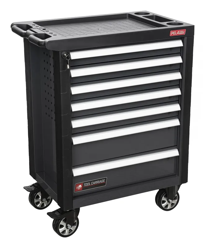 PELA 513880 är en grå-svart verktygsvagn med 7 stycken kullagrade lådor som är försedda med gummimattor så inte verktyg och annat innehåll inte glider runt och skramlar. Alla lådor är låsbara och försedda med en spärr i sidan. Vagnen har fyra hjul, varav två är sväng- och låsbara. Kapacitet per låda är 30 kg och totalt 300 kg.